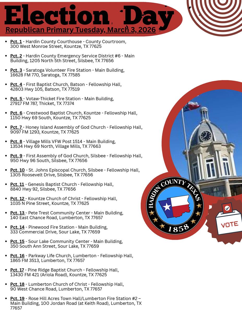 On September 1, 2023, HB 2626 went into effect. Hardin County Elections Administration will post each campaign finance report, including Appointment of Campaign Treasurer forms filed with our office on or after September 1, 2023. They will be made available here.